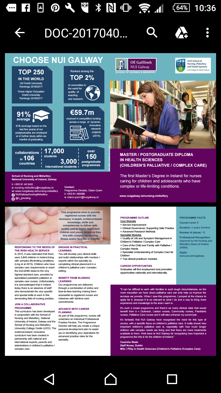 Our partnership with the Galway University Master’s and Post-Grad in Children’s Palliative Care means a great deal to us, and we wish to thank the new course director, Deirdre Fitzgerald, for her kindness and continuing commitment to parental involvement.